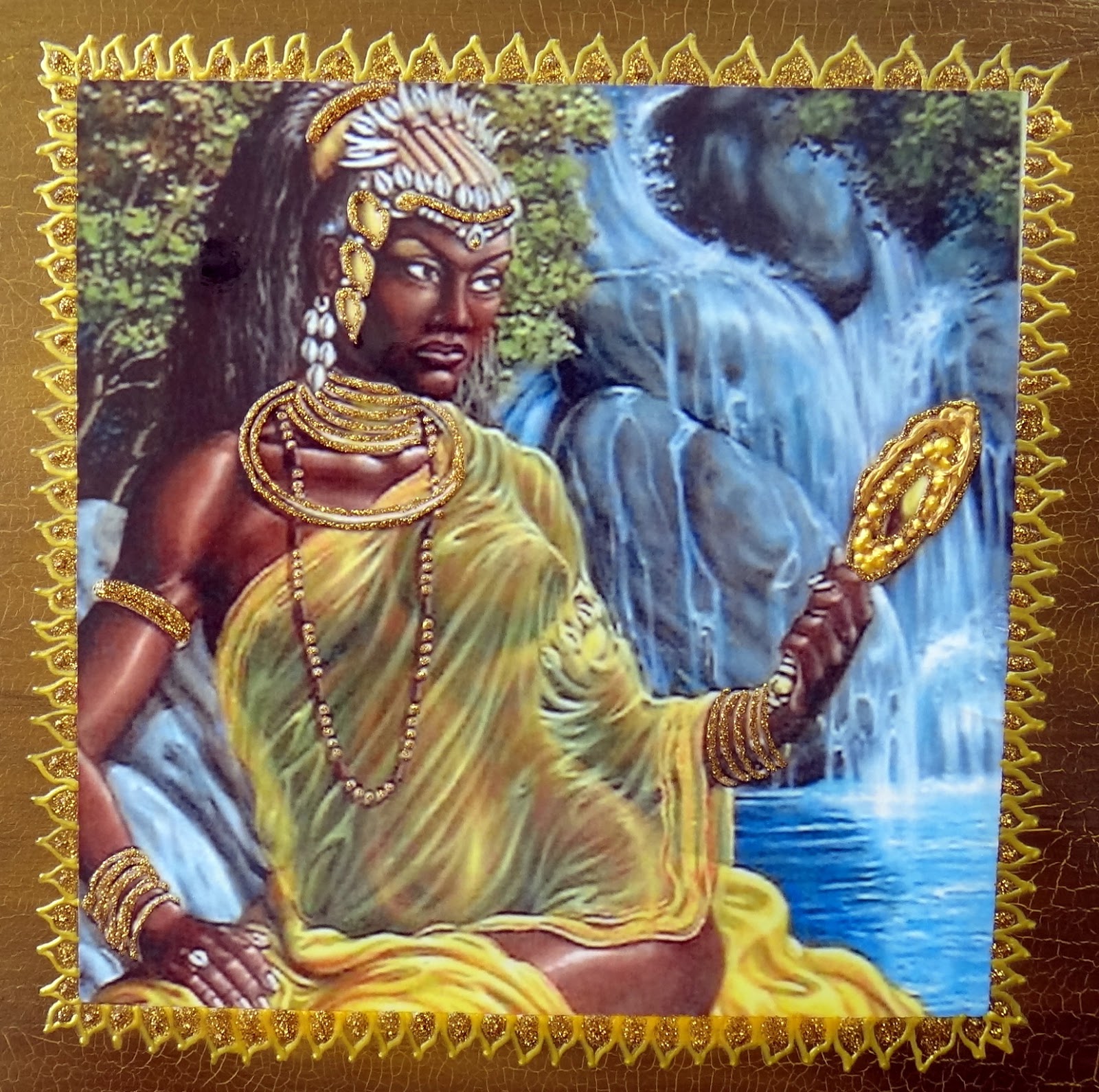 Oxum representa a deusa da beleza, orixá do amor, da fertilidade e da maternidade, responsável pela proteção dos fetos e das crianças recém-nascidas, sendo adorada pelas mulheres que querem engravidar. Seu elemento é a água, sua cor é o amarelo e seu dia é o Sábado.